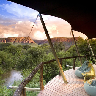 Marataba Safari Lodge features 15 canvas-and-stone tented suites, each one designed to offer complete privacy and breathtaking views of the Waterberg mountains or bushveld. Despite the term "tent", these suites are far from rustic. Think king-sized beds, air conditioning, deep stone bathtubs, outdoor showers, and shaded decks where you can sip a sundowner while watching elephants stroll past.